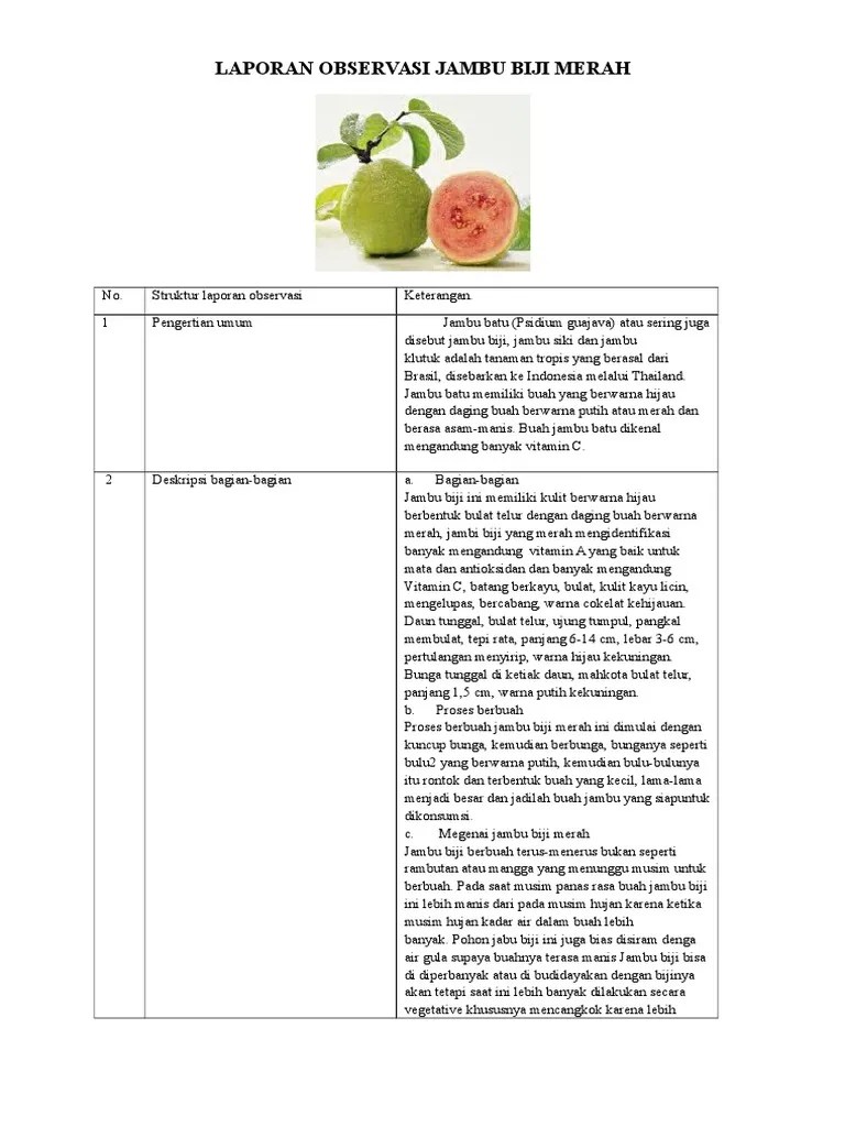 Jambu batu (psidium guajava) atau sering juga disebut jambu biji, jambu siki dan jambu klutuk adalah tanaman . Tidak begitu jelas mengapa namanya demikian karena . Serangga yang berasosiasi dengan tanaman jambu air (eugenia aqua burm) di sentra pengembangan pertanian fakultasâ. Berisi laporan hasil percobaan yang sudah dilakukan. Laporan hasil observasi jambu air in english, laporan hasil observasi.